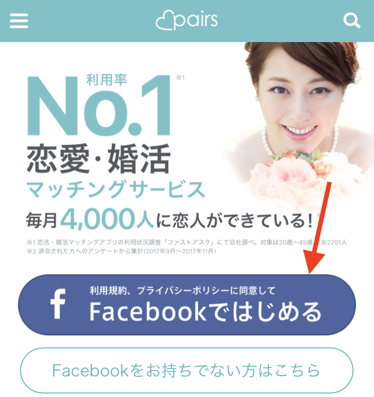 そもそも、ペアーズはFacebookアカウントがないと利用できません。