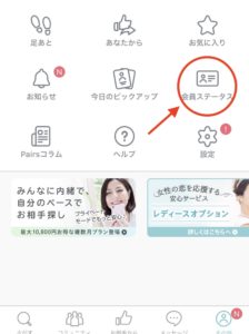 では、まず初めに無料会員さんのペアーズ退会方法です。女性の方はみなさんほとんど無料会員だと思うのでこちらを参照にしてください。