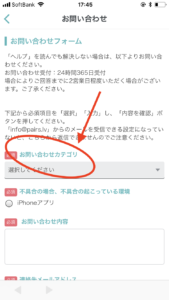 2、お問い合わせフォームが出てくるので、問い合わせカテゴリを選択