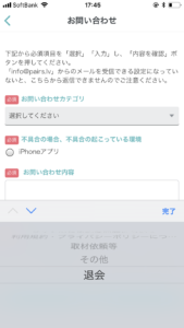 3、「お問い合わせ」を選択
