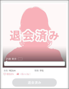 ペアーズで退会すると以下のように「退会済み」ユーザーと表示されます。