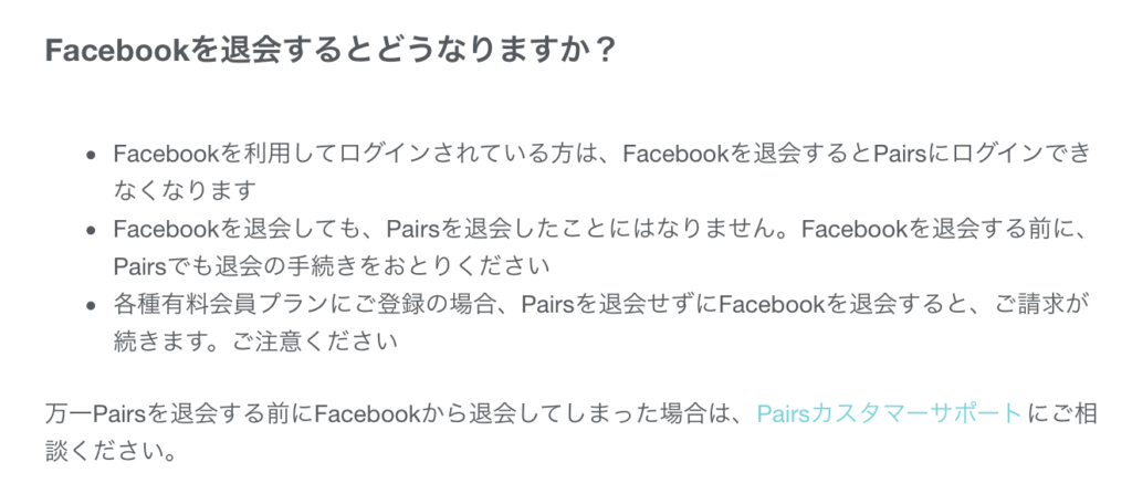 ペアーズより先にFacebookを退会してしまった場合