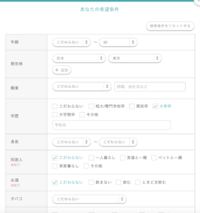 「18〜30歳までの東京在住」で、とりあえず大学は卒業している設定にする….